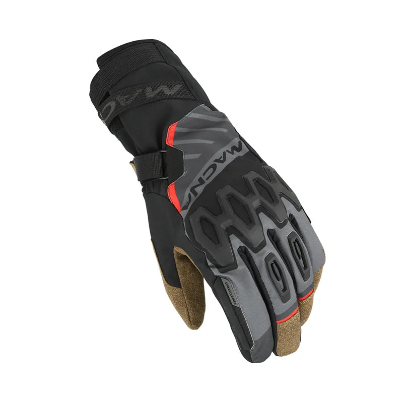 Il Tyrian è realizzato in spandex sul dorso della mano e nabuk sintetico sul palmo, con uno strato extra che rinforza le aree più critiche. È foderato, isolato e dotato di una membrana impermeabile Raintex, che lo rende adatto per le condizioni di guida fredde.